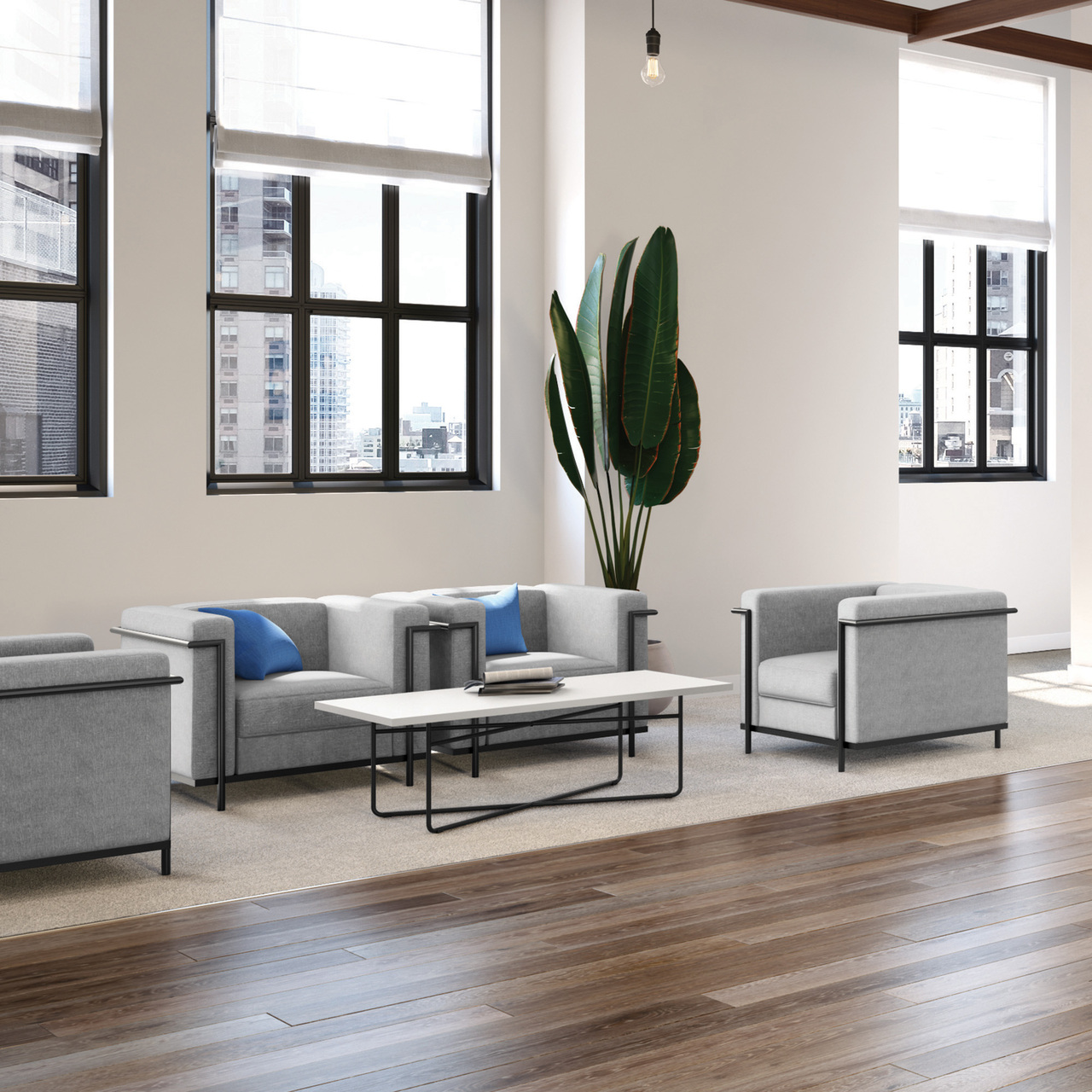 The Framed Collection is a sleek and modern take on an ordinary club chair. With its sophisticated and clean look, this collection will work great in any waiting area at your executive headquarters or even in the comfort of your living room. With its unique matte black metal frame that outlines the base and arms of the chair, your space will scream originality and comfort!