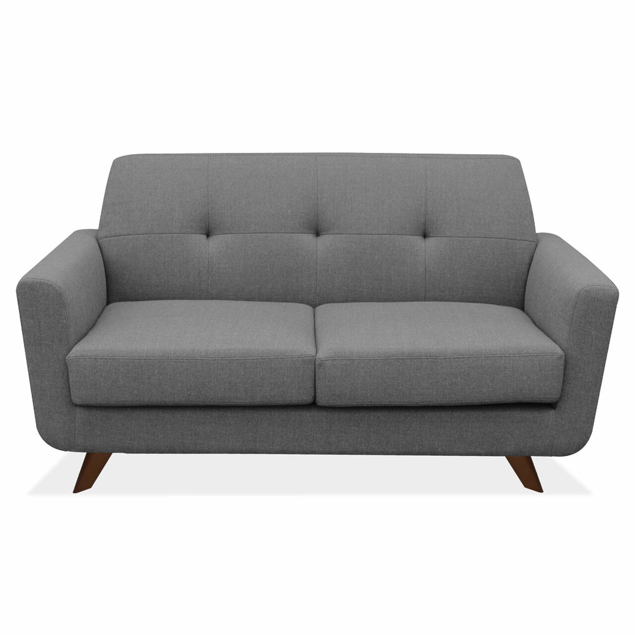 Sophisticate your lounge area or living space with the new love seat from our Partridge Collection. With the love seat's gray linen upholstery and dark cherry wood legs, your space will look sleek and stylish. The love seat also features a clean tufted back that brings a modern twist to any area. Comfort and style are what you get with this new love seat from the Partridge Collection.
